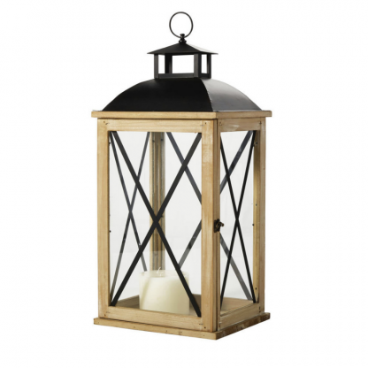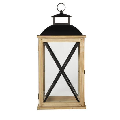 Lanterne en sapin – haut en métal noir– fenêtre en verre Très joli pour un centre de table de style champêtre ou à poser le long d’une allée