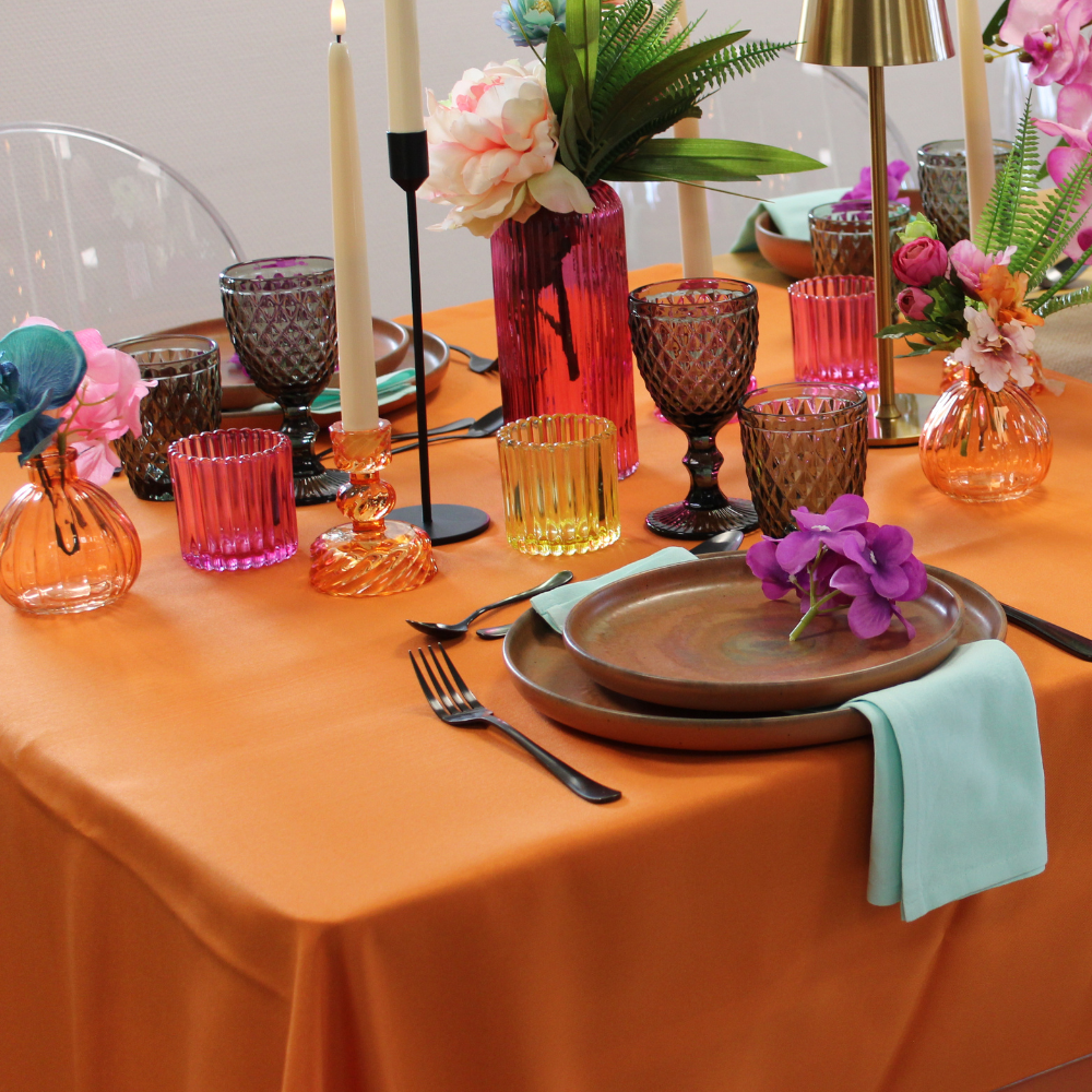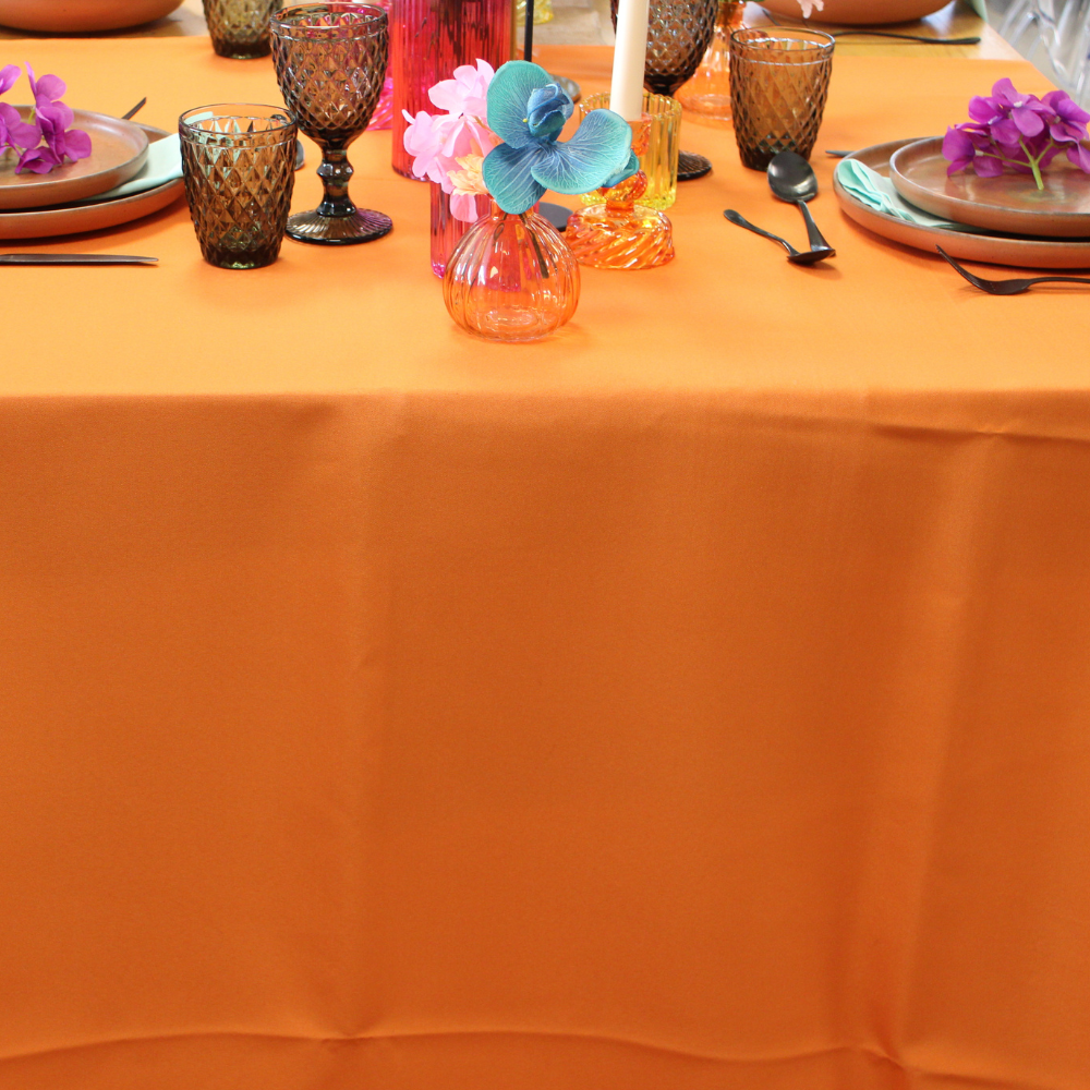 • La nappe ronde en tissus coloris ORANGE convient parfaitement à tous vos événements, privés et professionnels