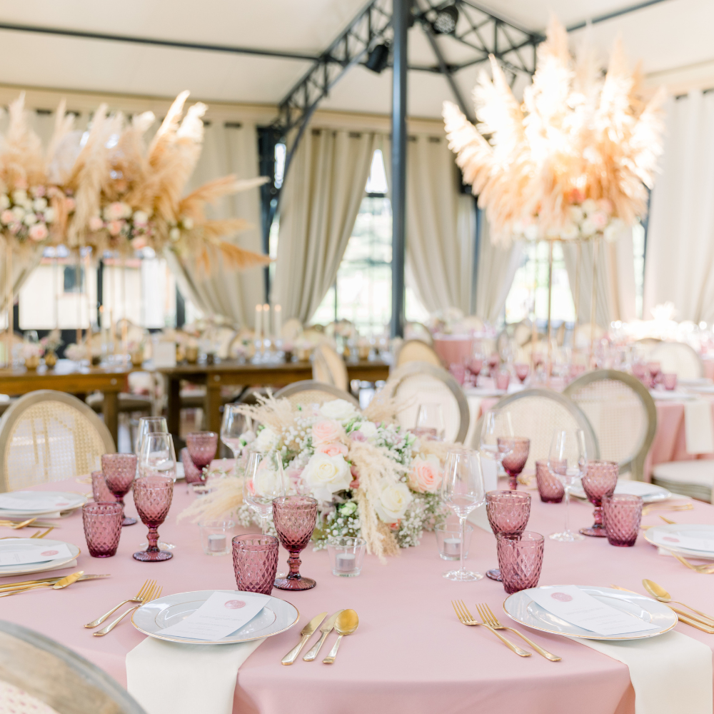 Nappe ronde en tissus D290cm – VIEUX ROSE / NUDE