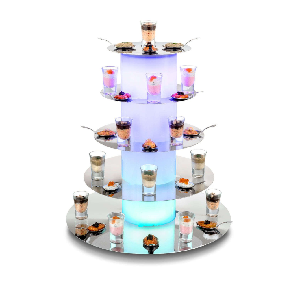 Présentoir buffet TOUR lumineux Festif Light H49.5cm -INOX – 5 étages